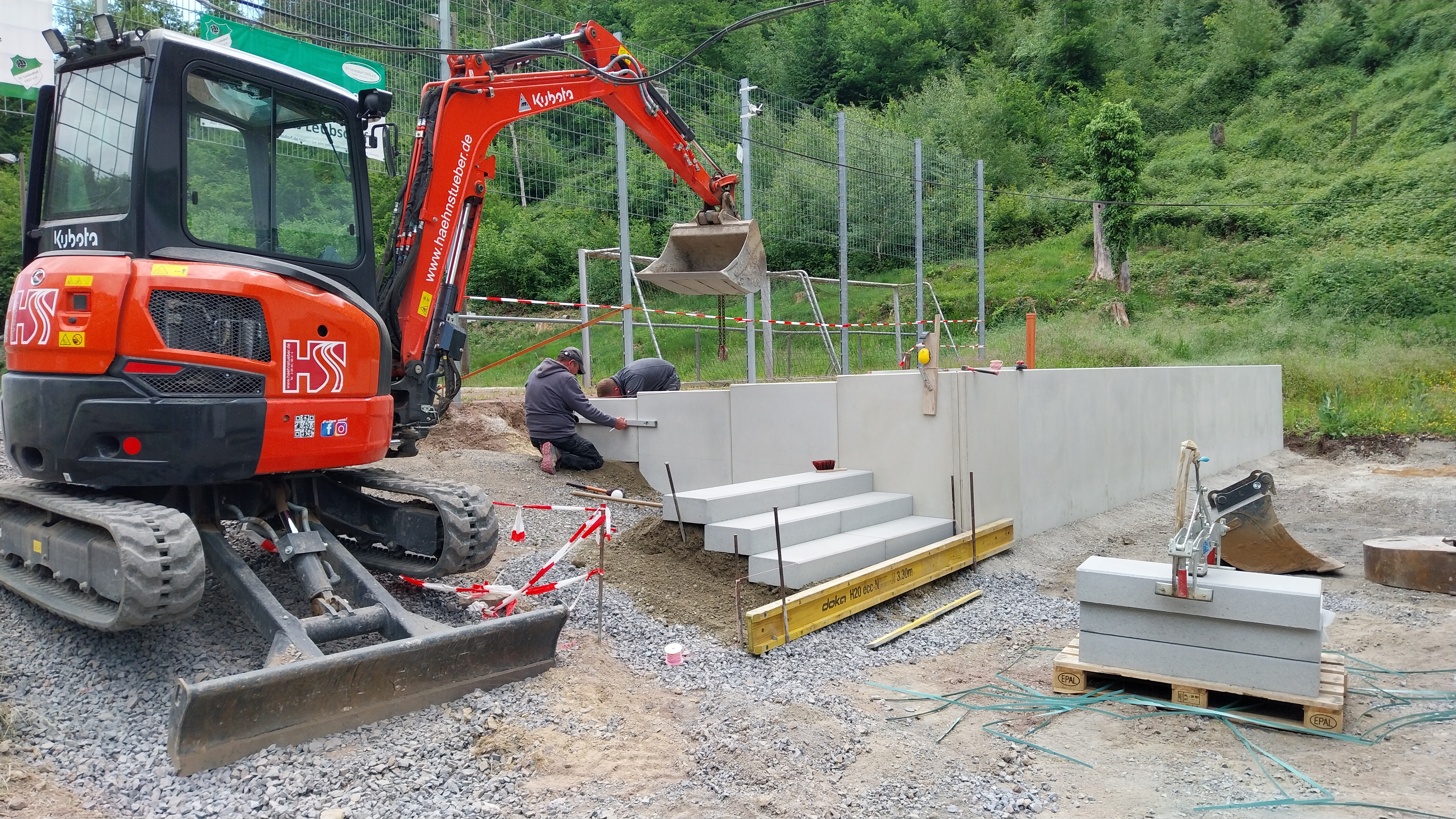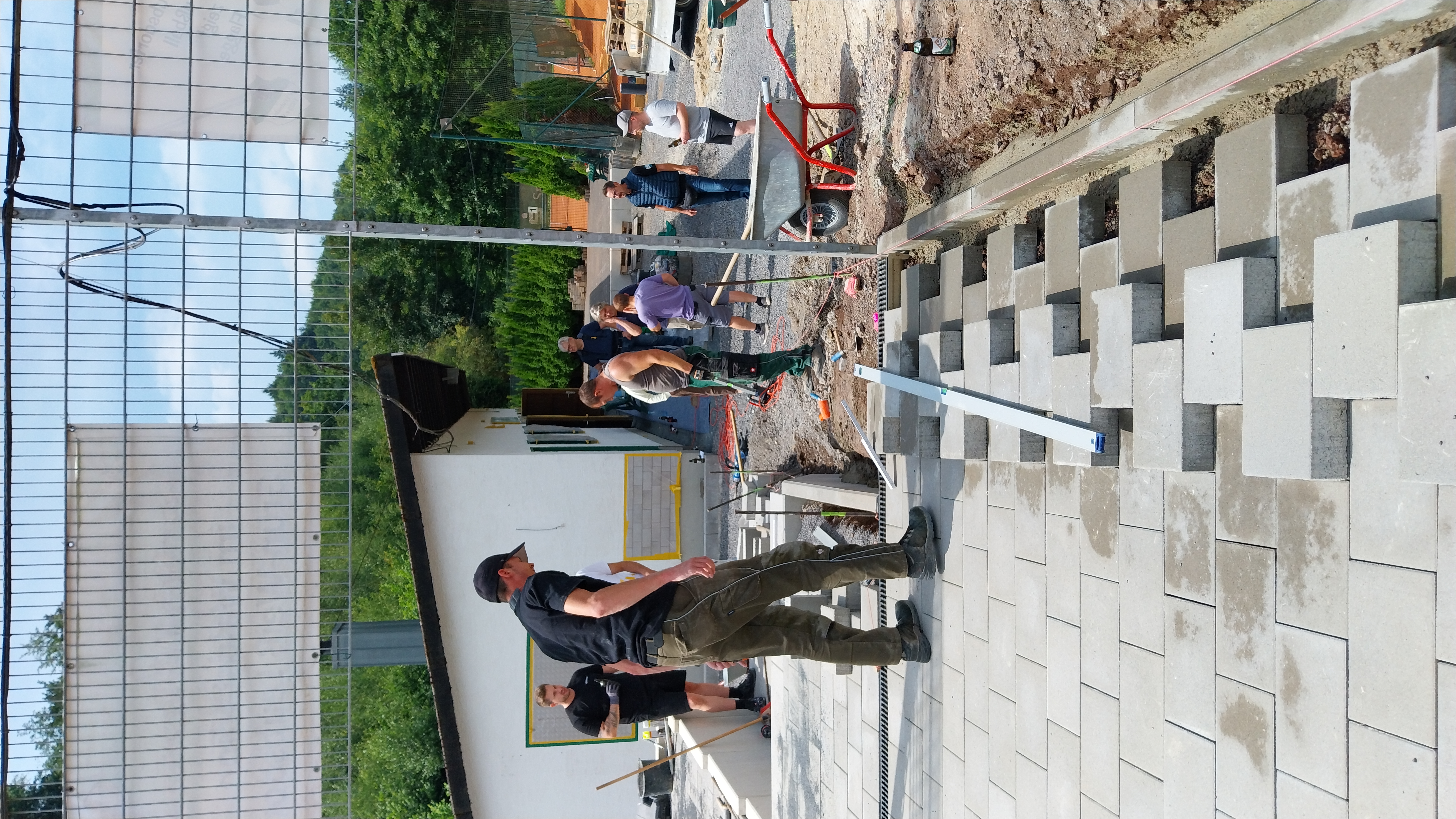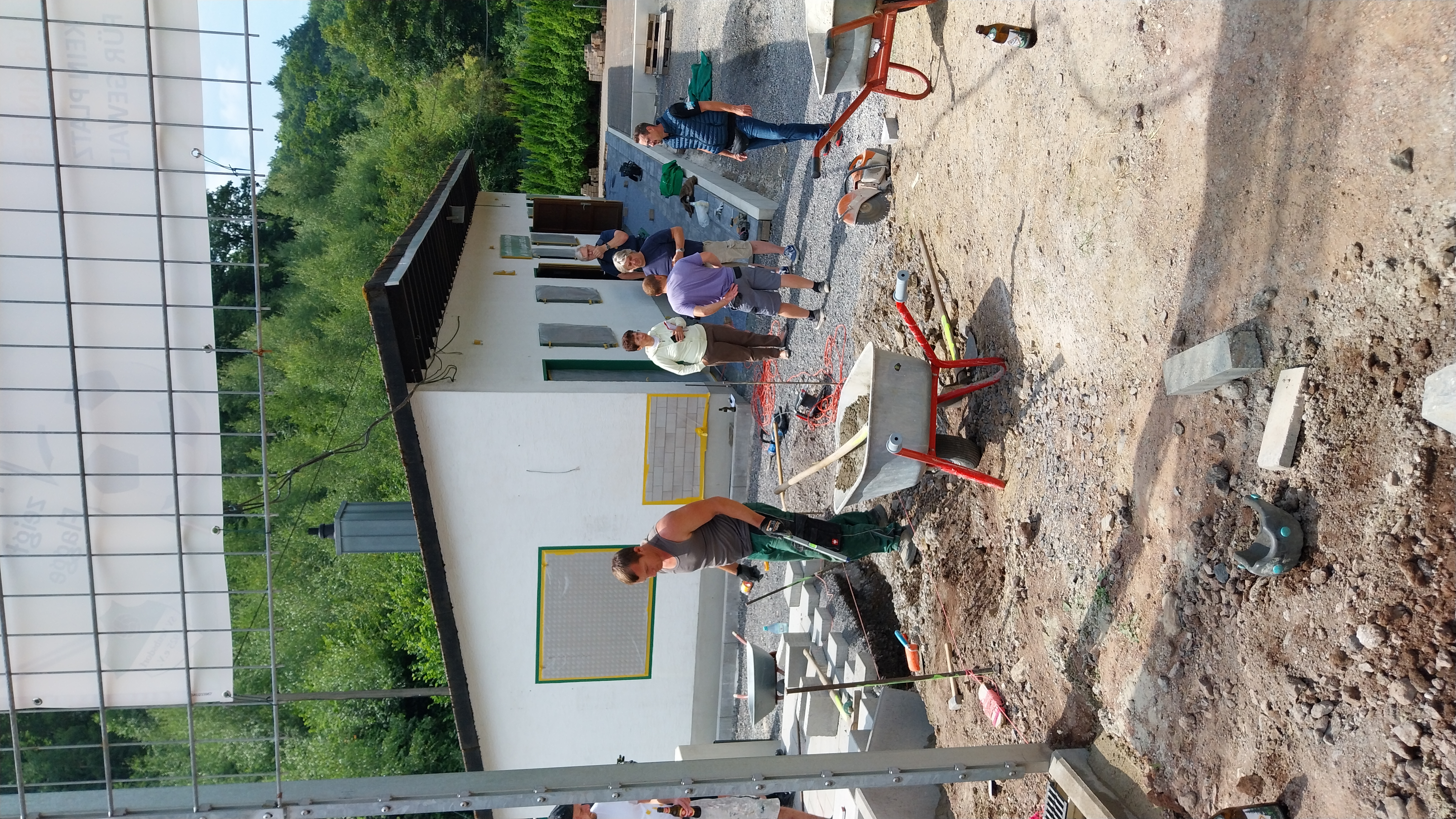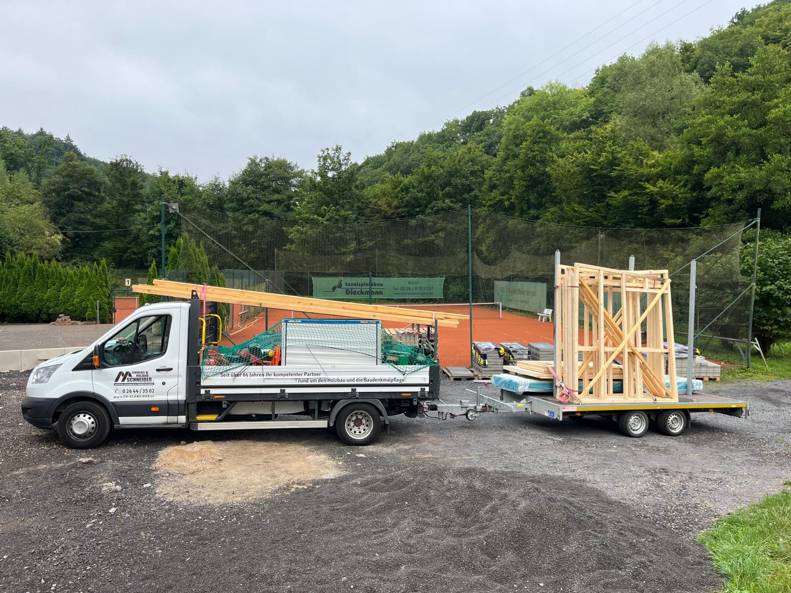 Die Kunstschmiede Hoppen rückt mit ihrem LKW an, um das Geländer für die Fanterrasse zu montieren.