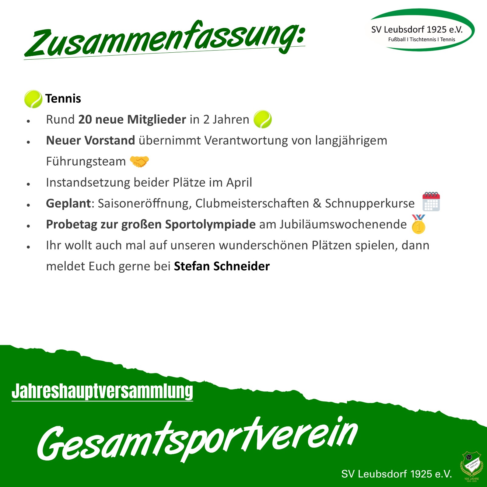 Tennisabteilung im SV Leubsdorf blickt nach vorne